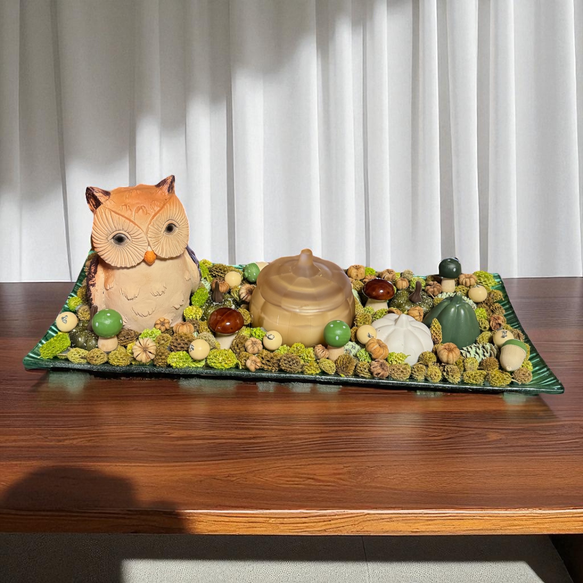 🍂 Őszi asztaldísz – Meleg színek, természetes hangulat! Díszítsd otthonodat ezzel a stílusos, kézzel készült asztaldísszel, amely az ősz legszebb elemeit hozza el hozzád: dísztökök, levelek, tobozok és egy csipetnyi varázs. Tökéletes választás étkezőbe, nappaliba vagy ajándékba!