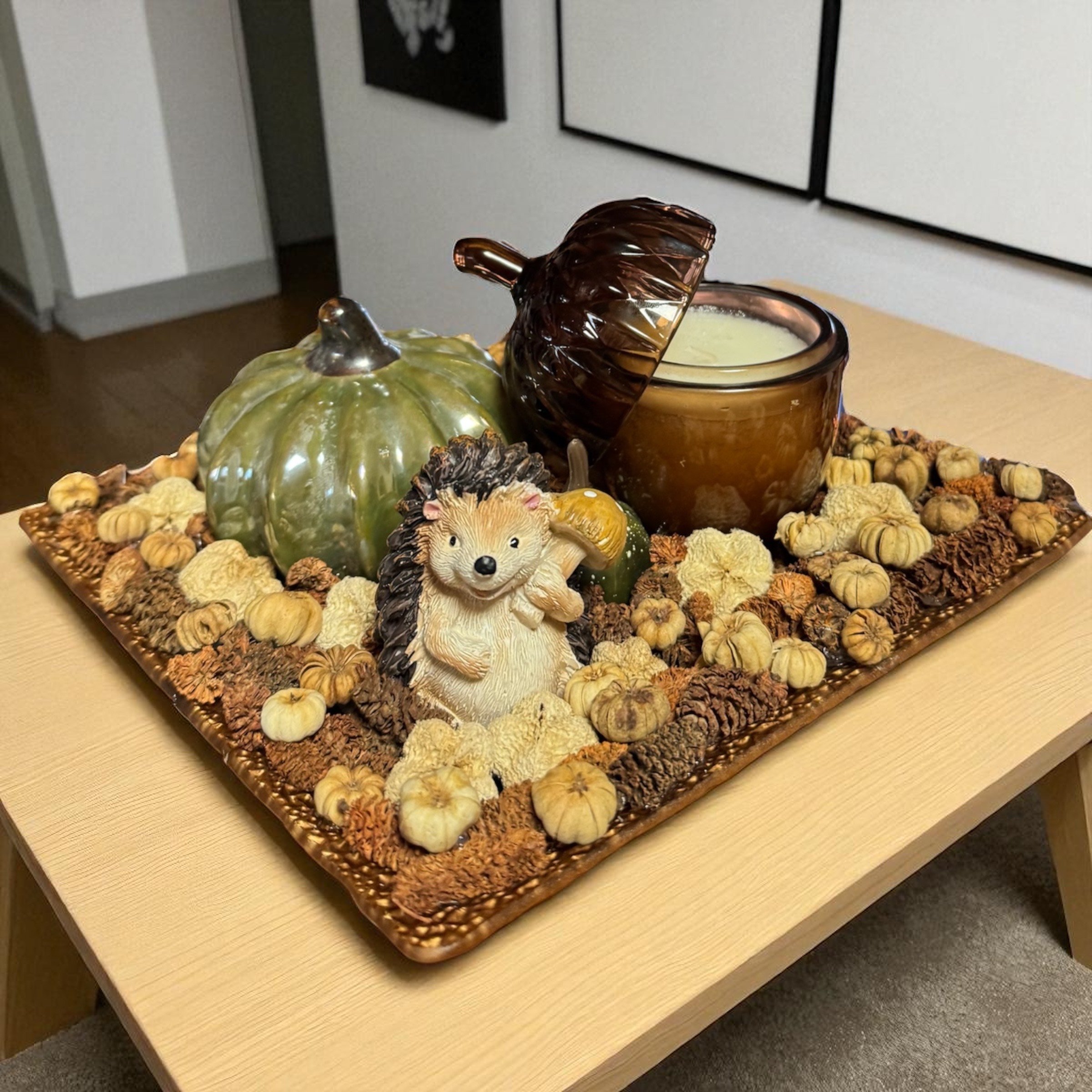 🍂 Őszi asztaldísz – Meleg színek, természetes hangulat! Díszítsd otthonodat ezzel a stílusos, kézzel készült asztaldísszel, amely az ősz legszebb elemeit hozza el hozzád: dísztökök, levelek, tobozok és egy csipetnyi varázs. Tökéletes választás étkezőbe, nappaliba vagy ajándékba!